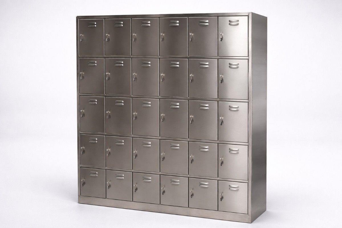 Secure stainless steel storage lockers.