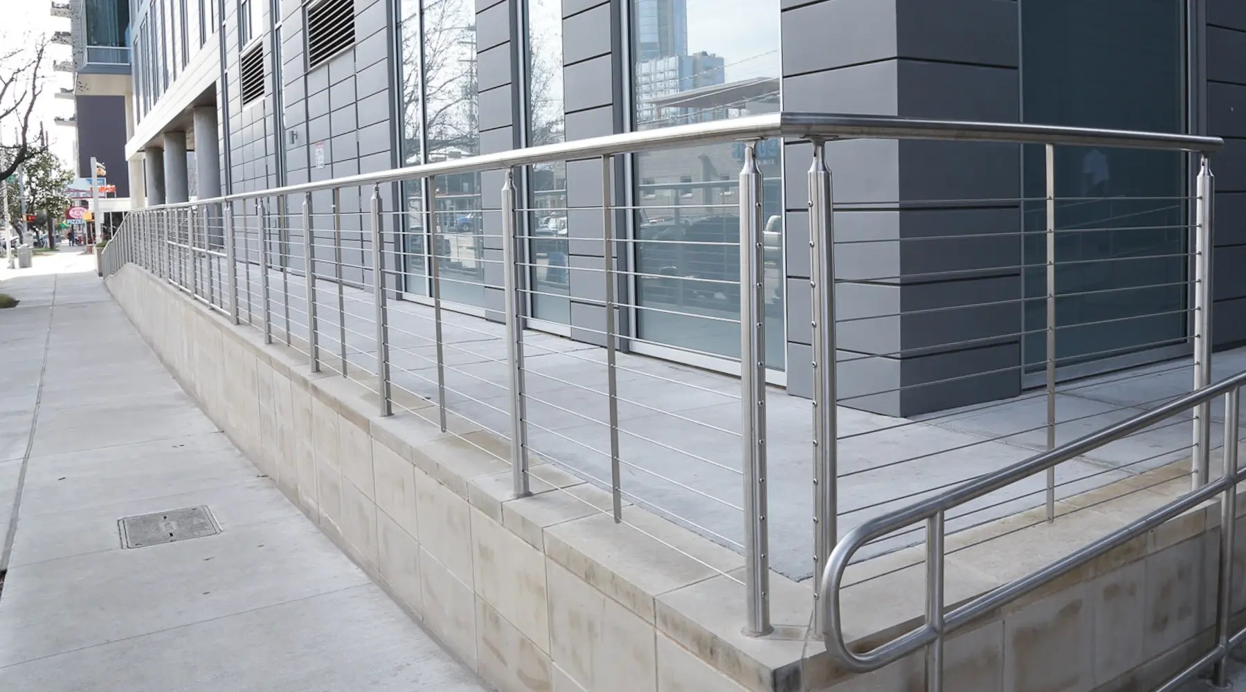 Modern stainless steel railing systems.