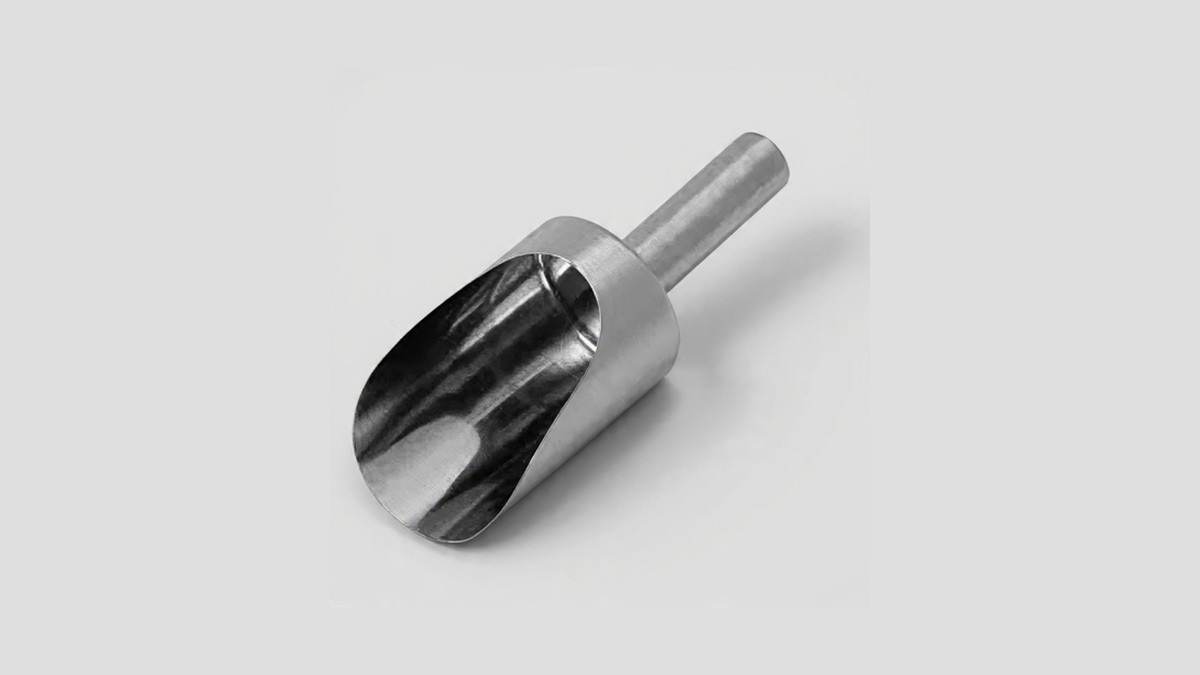Durable stainless steel scoop for industrial usage.